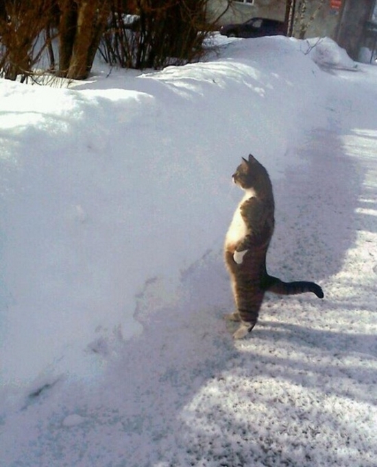 「これはネコか?いやネコにちがいない・・・。」とつい思ってしまう写真が撮影されました。なんとネコが2足で立ち、こっちを見ているというものです。