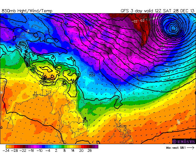 Unisys Weatherの今月29日前後の予想天気図によると、オホーツク海上に880hPa前後まで発達する低気圧が発生し、北日本を中心に大荒れになる恐れがあります。また、四国や九州北部でも積雪が予想され、低温による路面の凍結に注意が必要です。