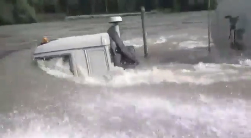 今回のトラックはもちろん内部に人が乗り運転していると思われるのですが、同様にほぼ水没状態で走り続ける車の映像がこれまで何度か撮影されたことがあります。