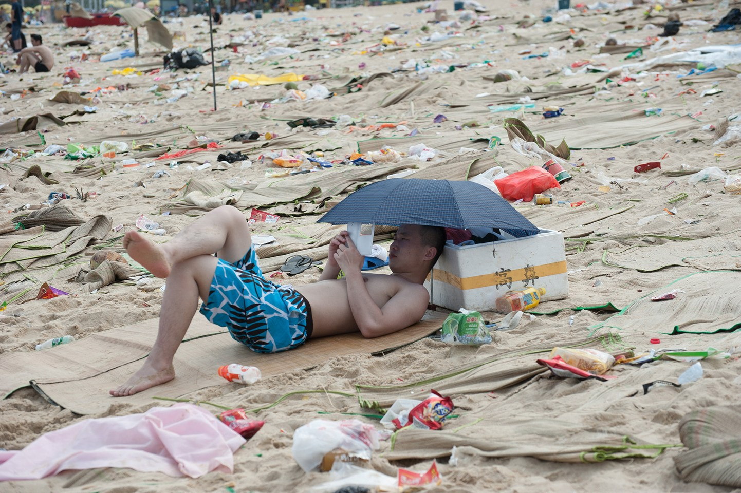 中国人と散らかったゴミの写真。イギリスDaiyMailによると、このビーチは大梅沙ビーチパークで、端午節と児童節の連休に行なわれた「ドラゴンボート祭り」に延べ48万人が訪れたそうです。しかし、連休が終わった後ゴミが片付けられることがなく散乱した状態で海水浴を楽しむ中国人の姿があったとしています。2014年6月3日、中国広東省深セン市のビーチには連休中多くの人が訪れたが、その影響でビーチには大量のごみが散乱していた。テンセント(QQ)が伝えた。