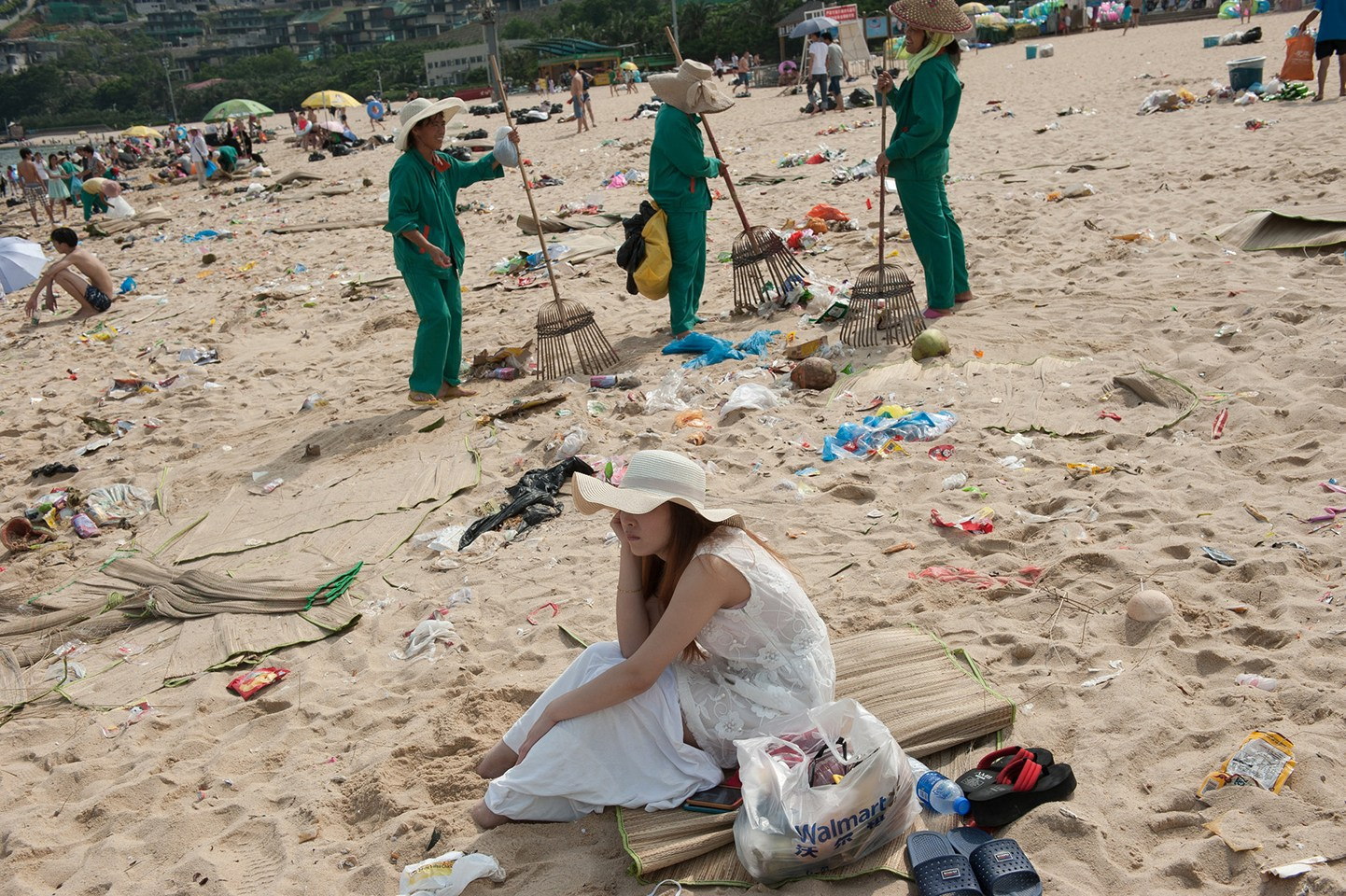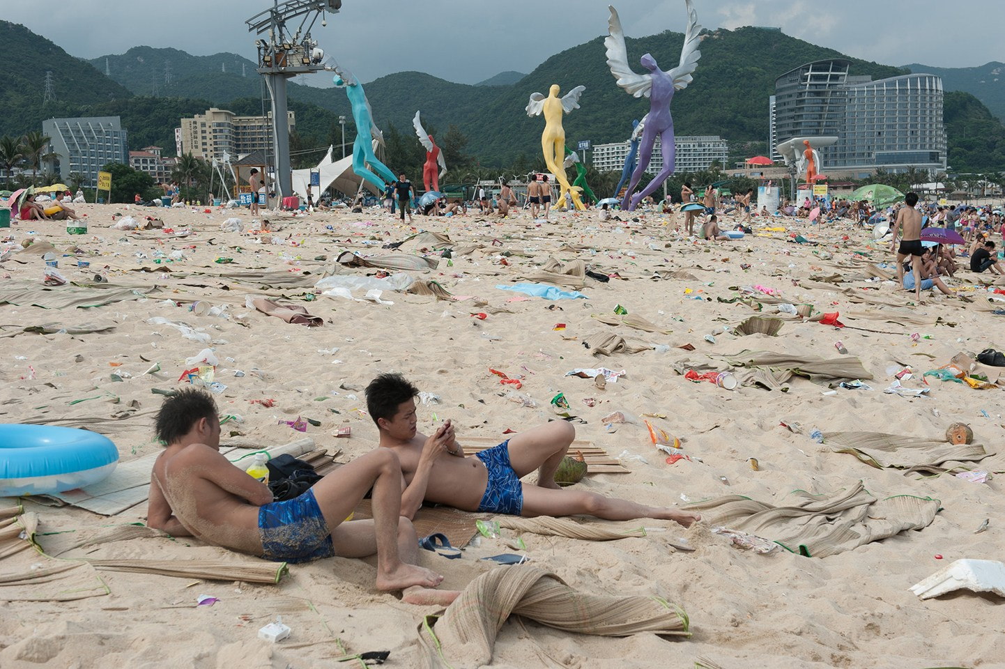 青い海に色とりどりの砂浜。もちろん『色とりどり』なのは水着ではなくゴミです。中国の海水浴場で先日、大量のゴミの中、海水浴を楽しむ人々が撮影され話題になっていました。