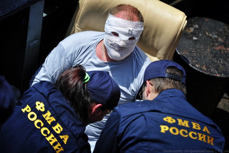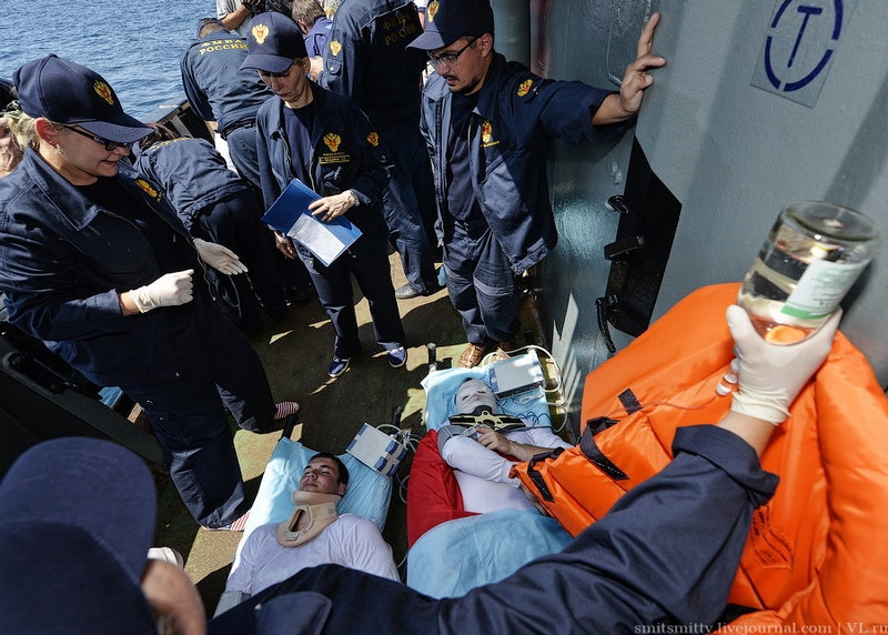 灰色の船が回収及び乗員の治療を行う専門船になります。
