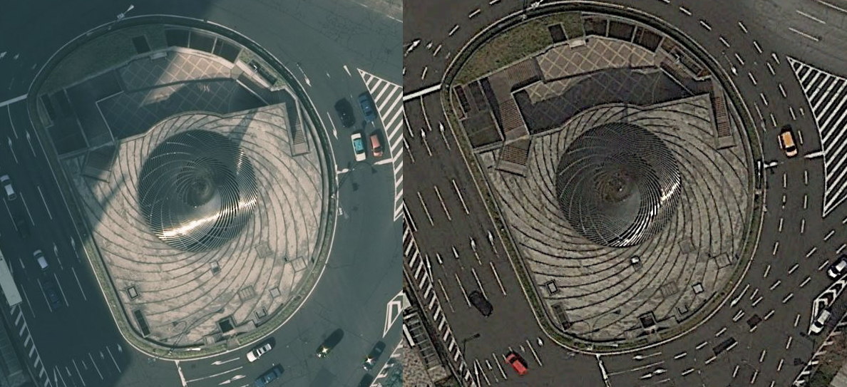 ▼解像度10cmと50cmの比較(写真は左がYahoo!地図、右がGoogle Earthから)