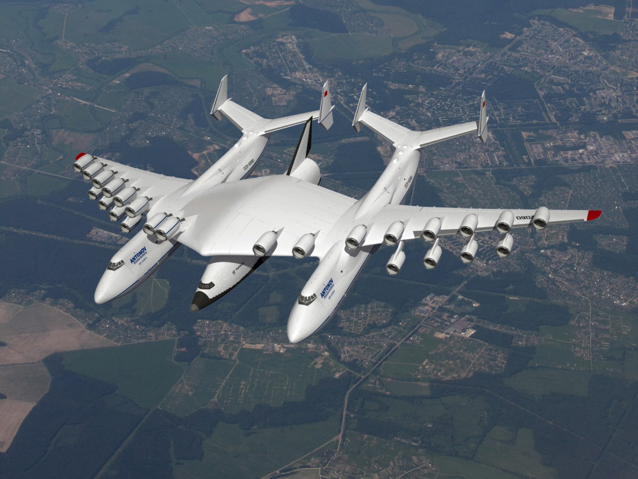 さて、今回紹介するのは旧ソ連が計画していたという超大型発射プラットフォームです。機体は世界最大の輸送機アントノフAn-225を2機繋げた形状になっており、搭載されるエンジンはなんと24基です。中央には「двухфюзеляжного」というスペースプレーンが搭載されています。