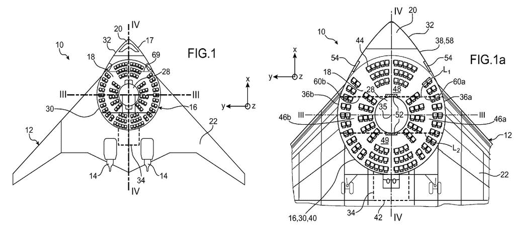 記事によると、見た目はの全翼機となっており、乗客は機体のやや前方側、円形に設けられたスペースに同じく円形に並べられた席に座るという方式が採用されています。