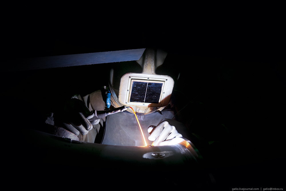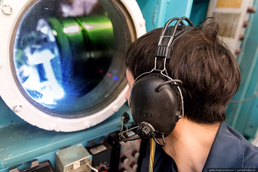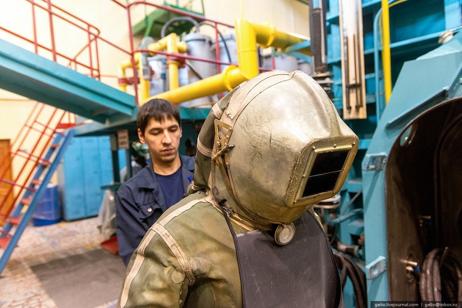 ▼溶接室内はアルゴンガス100%で満たされた環境になり、宇宙服のような装備が必要とのこと