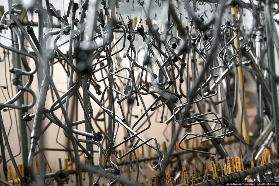 ここまで見せていいのか!?何故か戦闘機の製造工程が公になることが多いロシアなのですが、今回は最重用パーツであるエンジンです。その中でも3次元の推力偏向ノズルを採用したジェットエンジンの製造現場という極めて貴重な写真になっています。