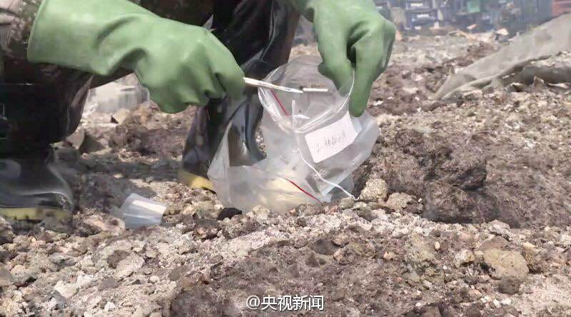 今月12日発生した天津市の爆発後、爆発地点に成形された穴に貯まった不気味な水。先日北京警備管区某化学団という一人の兵士により水のサンプル採取が行われました。