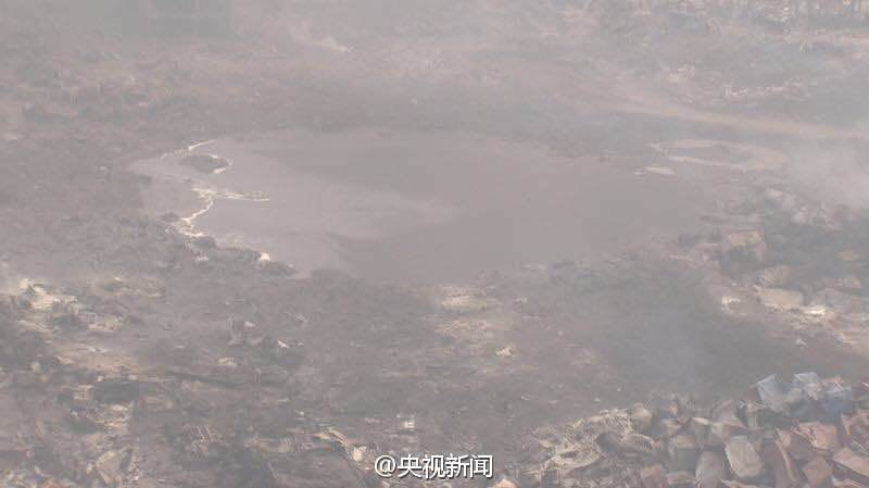 映画のワンシーンのようにも思えるこちらの写真。現場は連日報道されている天津市の爆発地点でここには直径およそ100mのクレーター上の地形が成形されどこから集まった水が溜まっている状態です。
