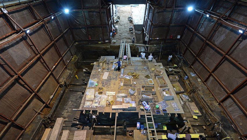 海昏侯墓は中国の主要な考古学的なプロジェクトとして武装警察により24時間パトロールされています。現在お墓を包むように建物が建てられその内部で発掘作業が進められており、お墓の構造としては2つの大きな墓にと副葬品を収めた部屋が7つ、その他にもいくつも部屋が設けられているとのことです。