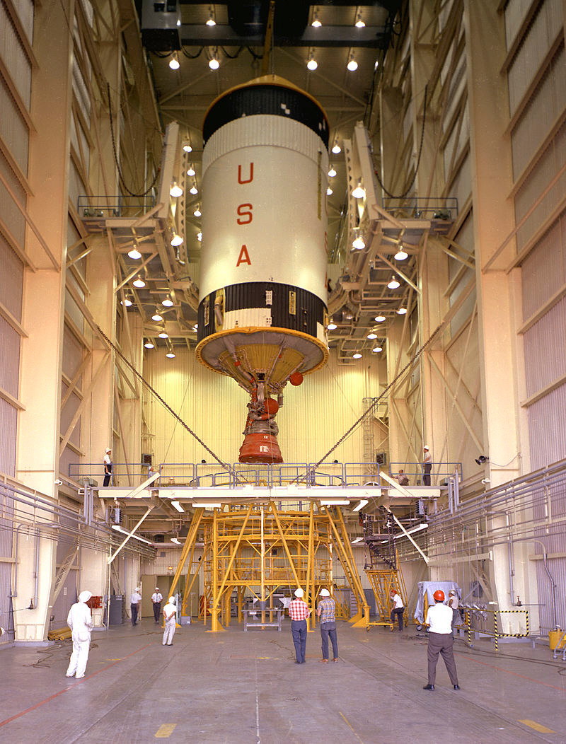 旧ダグラス・エアクラフトが製造したものでサターンV 型ロケットの第三段目になります。サイズは全高17.8m、直径16.6mで内部には73,280リットル(87,200kg)の液体酸素と252,750リットル(18,000kg)の液体水素とこれを燃焼させるJ-2ロケットエンジン1基が搭載されていました。