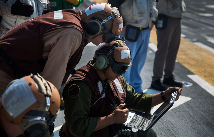 ▼強襲揚陸艦上、ポータブル端末を使用したALIS運用例