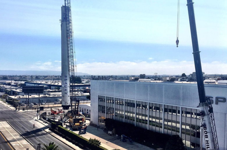 人工衛星を打ち上げた大型ロケットを世界ではじめて回収することに成功したスペースX。先日、この回収したロケットを本社敷地内の交差点沿いに設置する作業が行われたと報じられています。