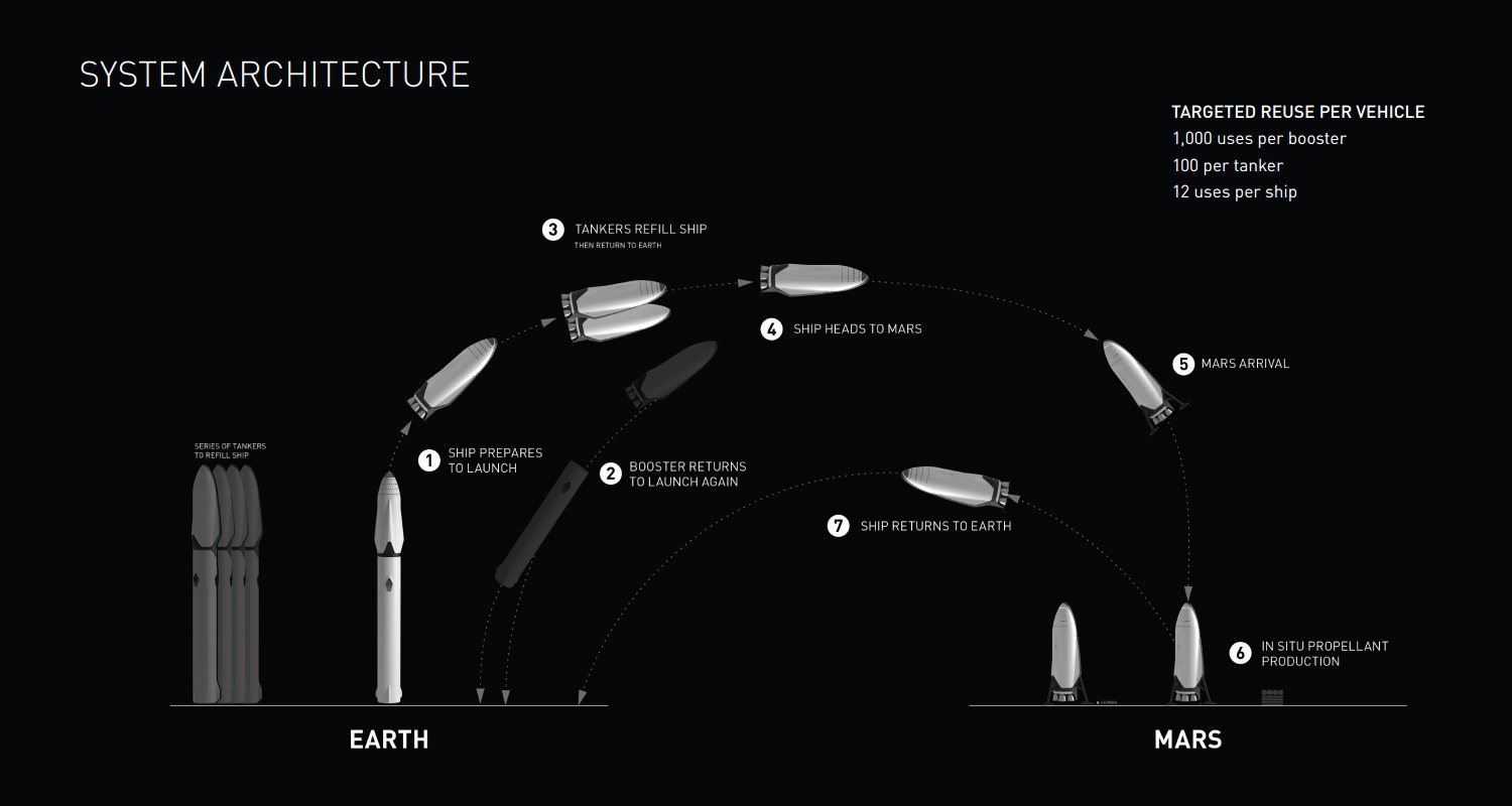 以上がスペースXが構想している人類火星移住計画とインタープラネタリー・トランスポート・システムです。スペースXによるとインタープラネタリー・トランスポート・システムは木星や土星への周回飛行、エンケラドスやエウロパといった惑星への着陸も可能としており有人火星探査のみに使用されるものではないとしています。