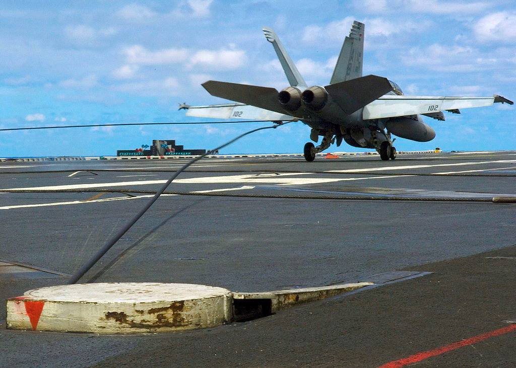 この手の艦載機は空母に着艦する際、機体後部からアレスティングフックを下げ甲板上に張られた4本あまりのアレスティングワイヤーに引っ掛け強制停止させるという方法が採用されています。ただし、ワイヤーを掴み損ねたりワイヤーが切断することが発生するため、その場合は直ちに発艦させる必要があるのですが機体が十分に加速できず海面に墜落するという事故は米空母でも発生しています。