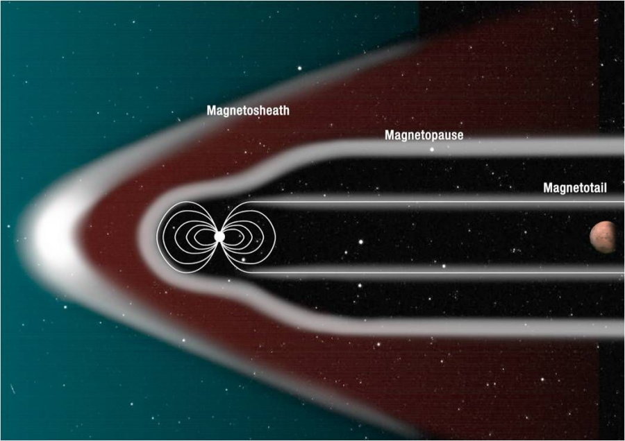 現在、火星には地球のような磁気圏がなく太陽から吹き出す太陽風により大気のそのほとんどを失ってしまいました。NASAによると太陽系初期の激しい太陽風により大気は急速に失われとしており、現在は太陽活動は弱まっているものの残り少ない薄い大気を毎秒100グラムの速度で流出させているとしています。
