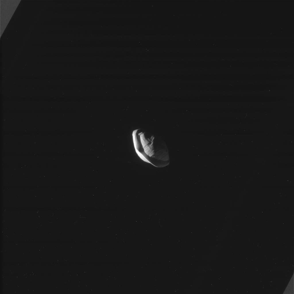 土星に探査機カッシーニが送りこれまてから今年で13年。過去に遠方からパンを撮影し『ひし形』に変形している姿を確認していたものの近距離から撮影されることはありませんでした。しかし、カッシーニ・ホイヘンス・ミッションも今年9月に終わりを迎え、最後に土星に突入するまで高度を下げておりパンドラやダフニスなどの衛星を近距離で撮影し続けています。