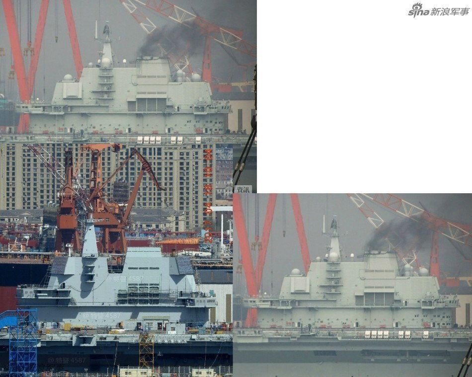以下は4月以降に撮影された最新の001A型航空母艦です。