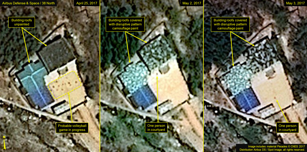 先月、北朝鮮北東部にあり過去に核実験が行われたエリアに建設されている施設について最近になり屋根の塗装を『迷彩柄』に変更されたと報じれています。