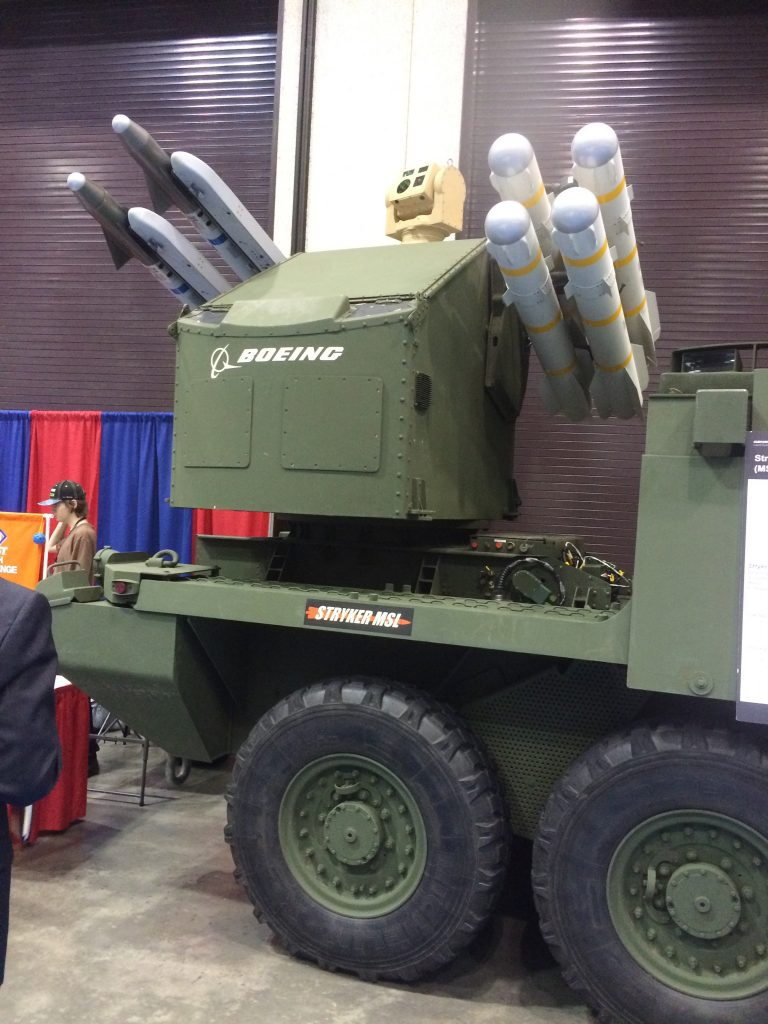 アメリカで開催されているスペース&ミサイルディフェンスシンポジウム2017(SMD Symposium)で発表されたのは兵員輸送型のストライカーをベースに改造された対空・対地攻撃可能なManuever SHORAD Launcher(MSL)です。