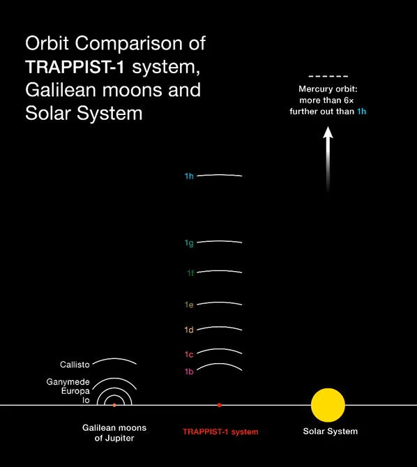 実はこの惑星系は非常にコンパクトで太陽にあたるトラピスト-1は木星のわずか1.1倍のサイズ、太陽質量の0.08%しかなく地球サイズの惑星がまるで衛星のように7つも公転しているという奇妙なものでした。
