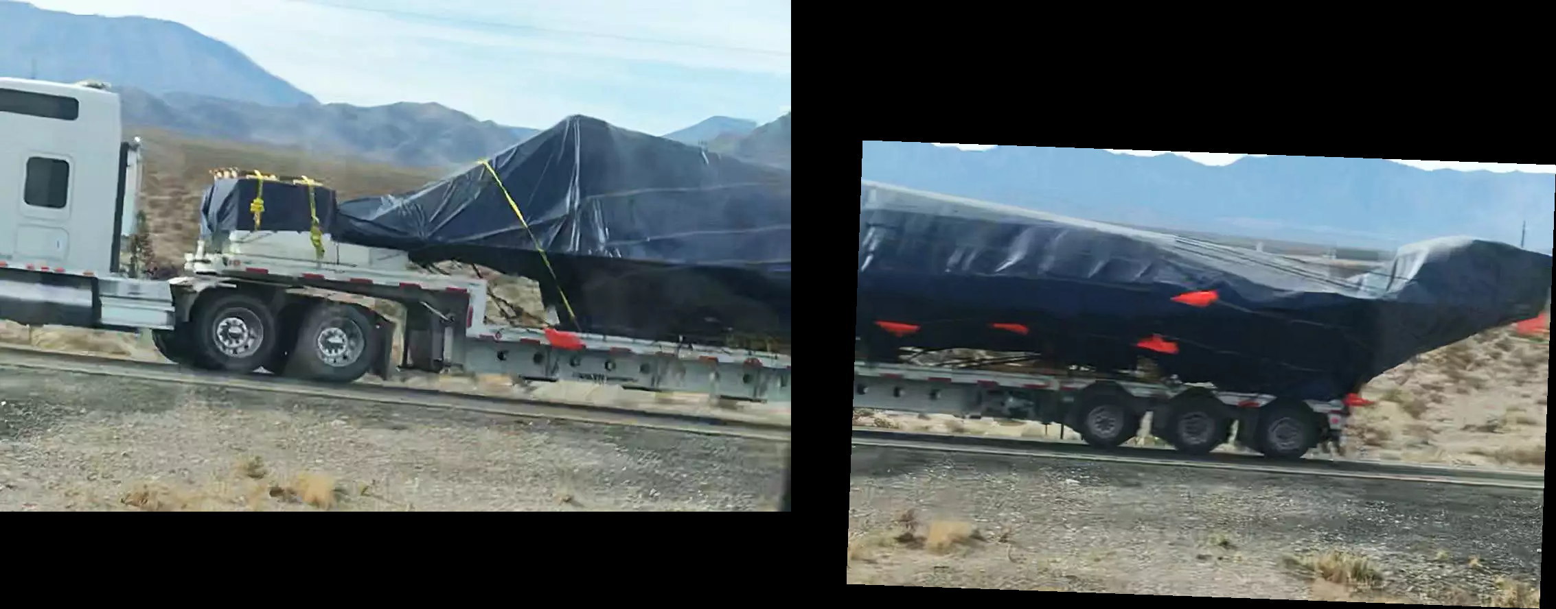 撮影されたのはクリーチ空軍基地近くの国道95号線で写真は車載映像からのビデオスクリーンショットです。現在この機体が何処に向かっていたのか、どこに運ばれたのかは明らかになっていません。