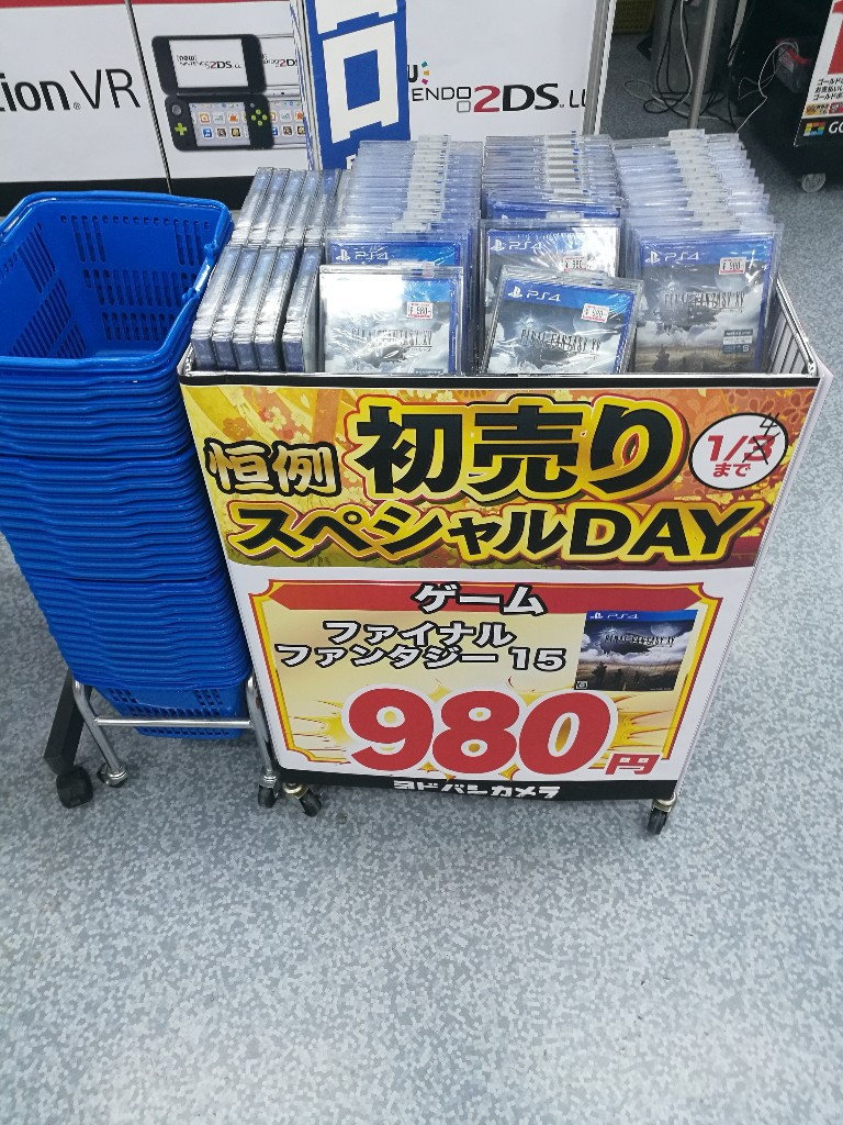 ゲーム屋のチラシ広告に付いてくる割引券を使うと500円で新品のFF15が買えてた時もあった。