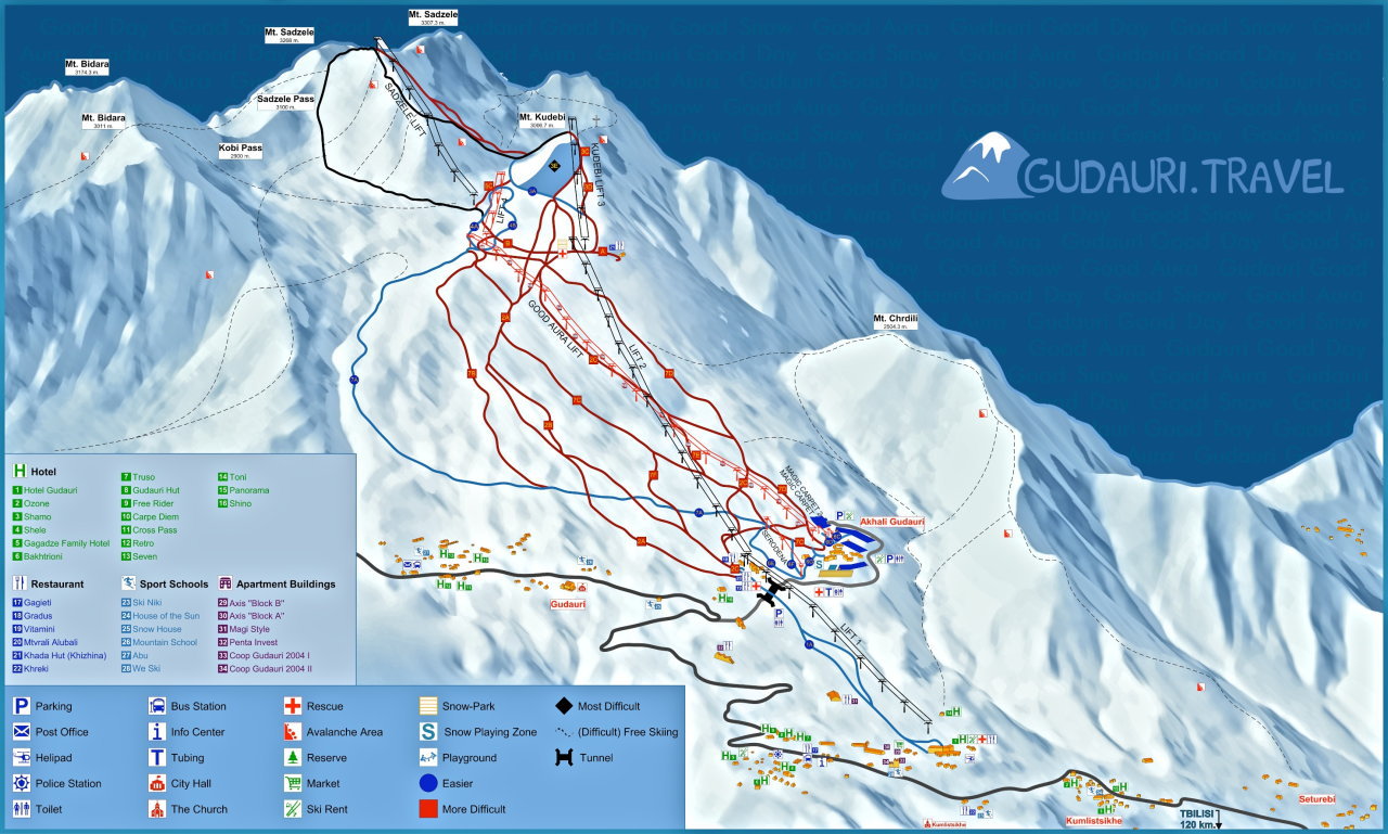 こちらが事故があったスキー場のコースとリフトの位置を表したものです。標高3200mほどまでリフトで行けるという大規模なスキーリゾートとなっているのですが、映像から事故があったのは左上『SADZELE LIFT』という最上部のリフトと考えられます。
