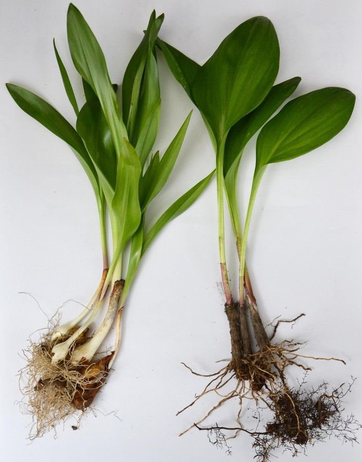 こちらが毒草『イヌサフラン(左)』と食用の『ギョウジャニンニク(右)』 です。見分けがつきにくいのですが、ギョウジャニンニクは春先になると芽吹き山菜として食べられているといいます。