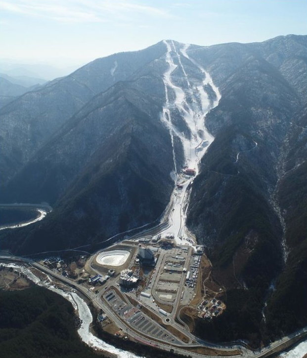 加里王山アルペン競技場はもともとスキー場として作られた施設ではなく平昌五輪のため建設されたスキー場です。建設のため保護林の5万8000本の天然木が伐採されていました。