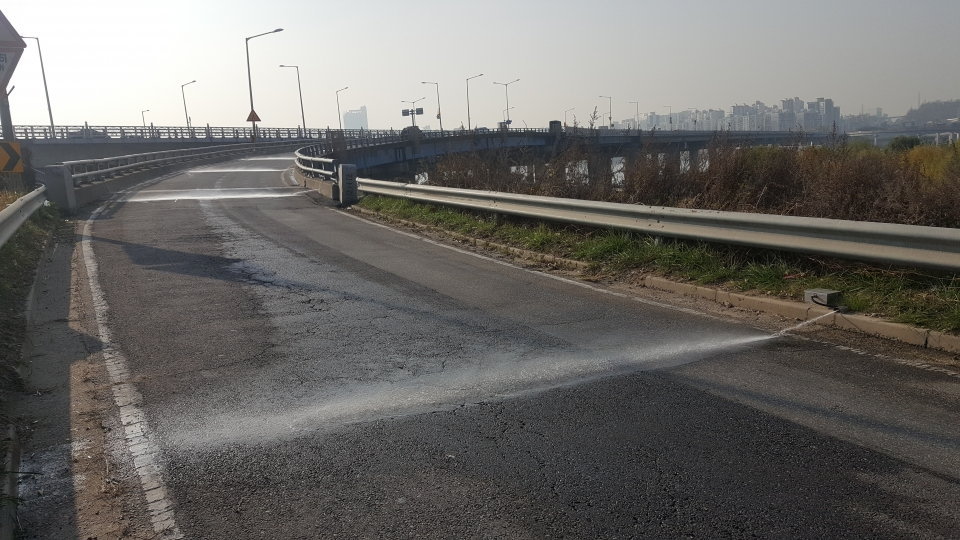 記事によると、冬季運用される融雪装置では韓国では塩水が放出されているものの、9月末の夏場までは通常の水を放出するとしており、これにより排ガスなどからでる微小粒子状物質を除去する一方で道路を冷やすことができるという『打ち水効果』もあるとしています。