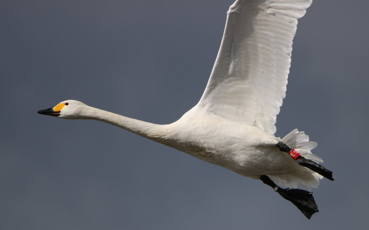 ▼足環をつけたコハクチョウ