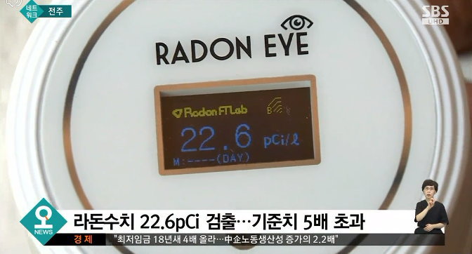 韓国メディアSBSによると、韓国における代表的な環境保護運動団体『環境運動連合』が行った簡易調査として、ラテックス枕のような日用品に関して放射線測定器ガイガーカウンターで調査した結果、30分もたたないうちに放射性元素であるラドンの数値が22.6ピコキュリーが測定されたとしています。これは室内空気質の基準である4ピコキュリーの5倍を超える数値だとしています。
