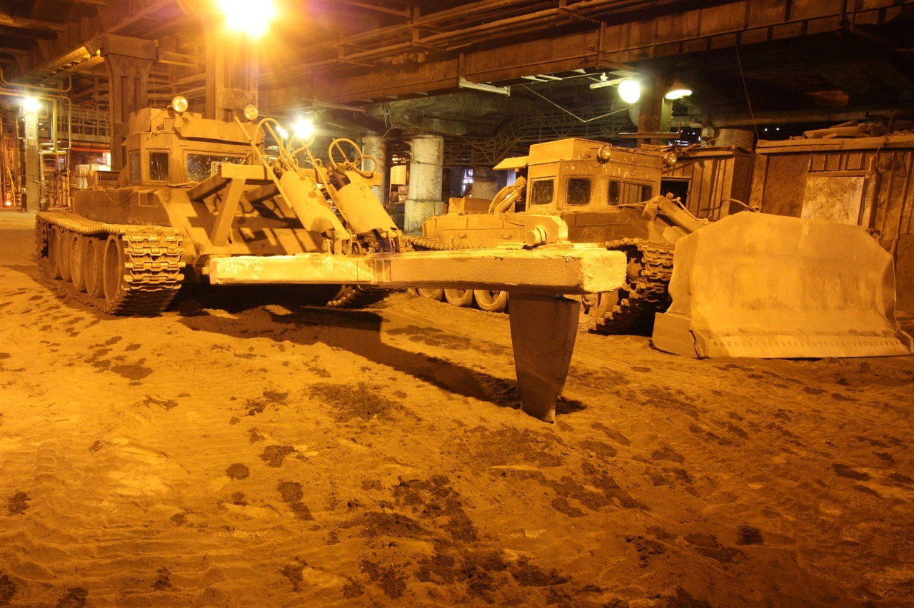 具体的にどのような工程で使われていたのかはよくわからないのですが、数百度に達するホットスラグを処理するため戦車が使われているそうです。戦車には砲塔などはついておらず、視界のよい操縦席が搭載されています。