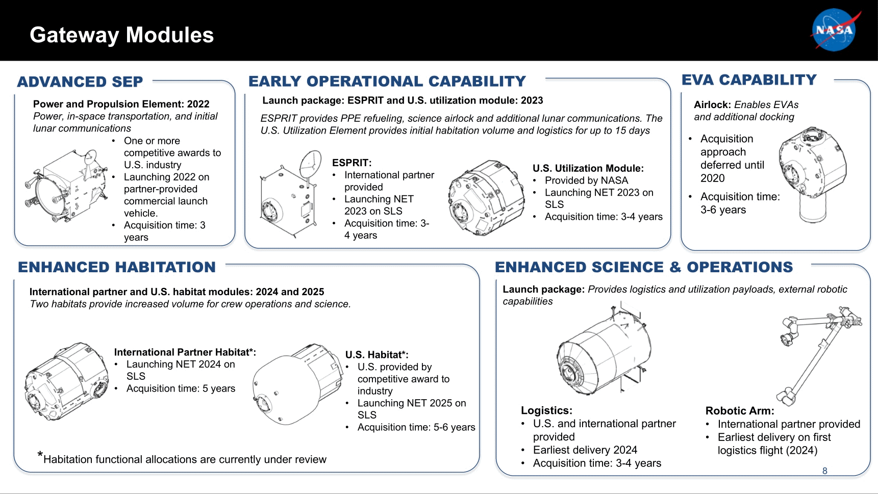 またゲートウェイへの人員輸送はNASNが開発しているオリオン宇宙船とそれを打ち上げるSLSのみを使用する予定としてます。