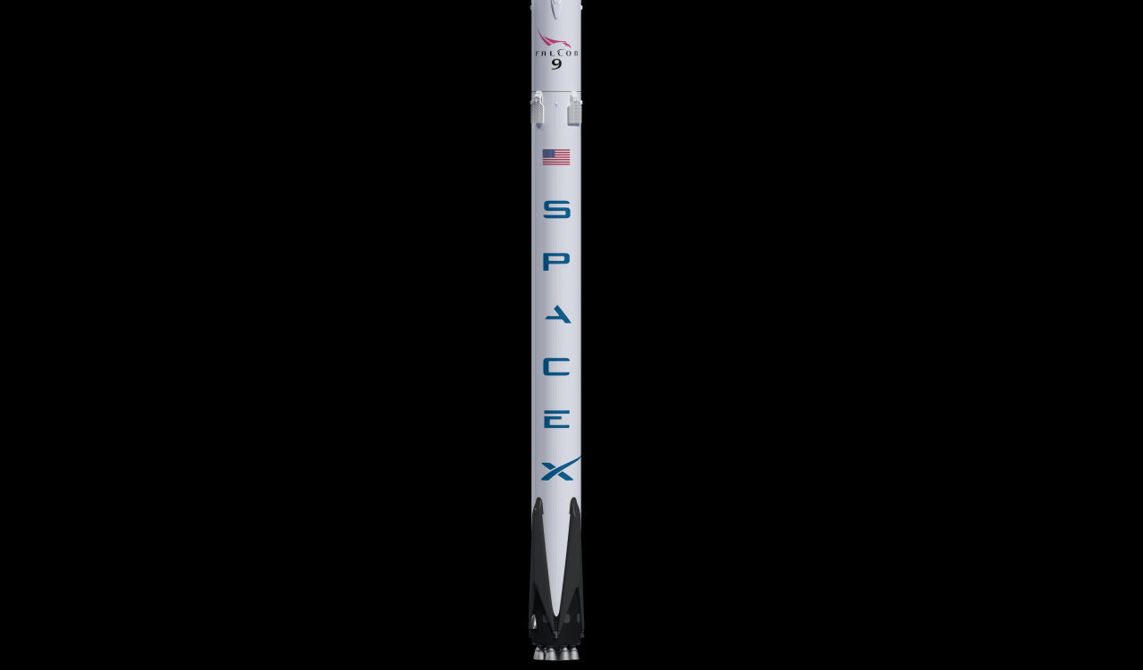 こちらがスペースXが開発したファルコン9ロケットの第1段目(CG)です。このようにロケットの下側には4つの着陸脚、上部には姿勢制御用のグリッドフィンと呼ばれる4枚の翼が搭載されています。同様の構造が長征6号Xでも確認できます。