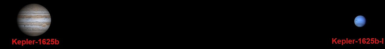 ▼Kepler-1625bとKepler-1625b-Iの目安。惑星は土星と海王星を使用。距離やサイズはほぼ同じとのこと(Wikipedia)