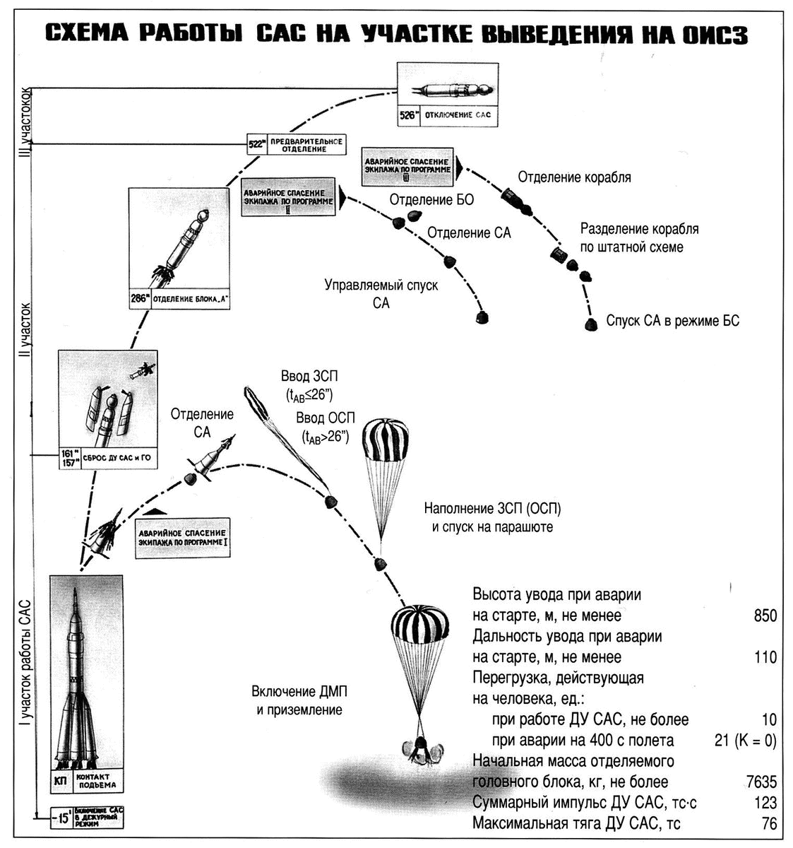 ソユーズおけるLESは主にブースターが切り離されるまでに使用されるものと考えられるのですが、この場合切り離されるのはソユーズ宇宙船を構成する『軌道船』と宇宙飛行士が乗り込んだ釣鐘型の『帰還船』のみ切り離し、上空で帰還船のみ切り離しパラシュートで帰還するという内容が書かれています。