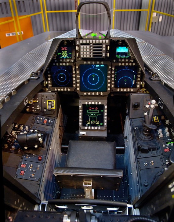 ▼F-35のコックピット。ヘッドアップディスプレイがない