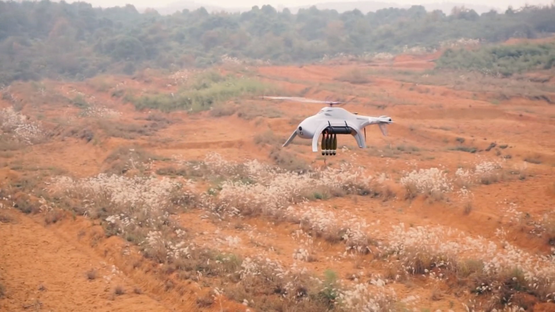 搭載可能なものとして注目なのは、迫撃砲弾を4発搭載し飛行することができるという無人攻撃ヘリとしても運用できる点です。記事によると82mm迫撃砲弾を4発搭載することができるとしており、その場合での飛行性能は明らかになっていないのですが、巡航速度は70~90km/h、最高速度は130km/h。何も積んでいない状態で最大60分飛行することができ、最高飛行高度は5,100mとしています。