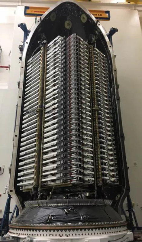 ▼フェアリングに収められたスターリンク衛星