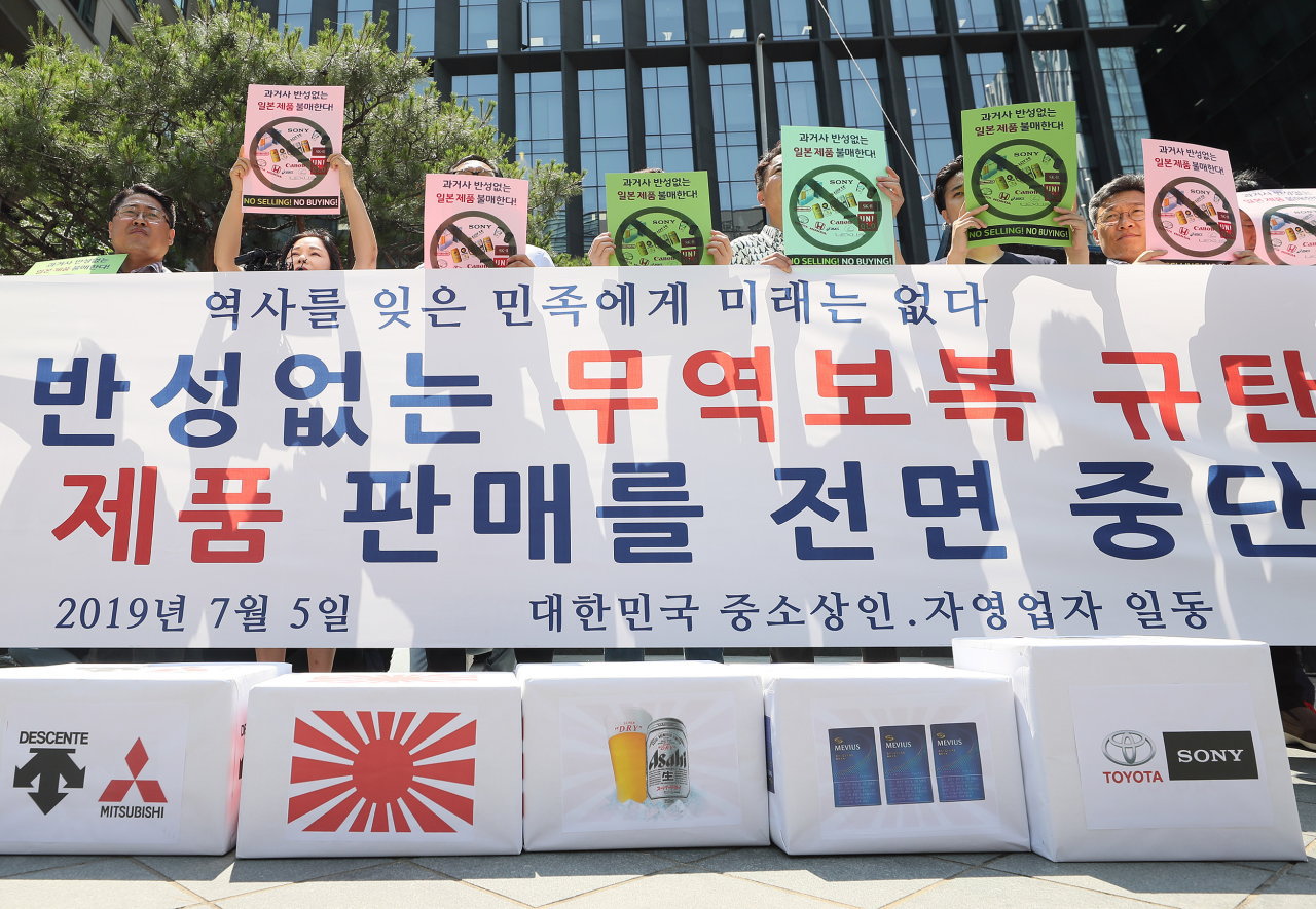 中国や韓国メディアによると今月5日、韓国中小商人自営業者総連合会(韓商総連)という中小企業の経営者らがソウル・鍾路区(チョンノグ)にある在韓日本大使館前で先日から実施された韓国への輸出強化に対して抗議活動が実施されました。