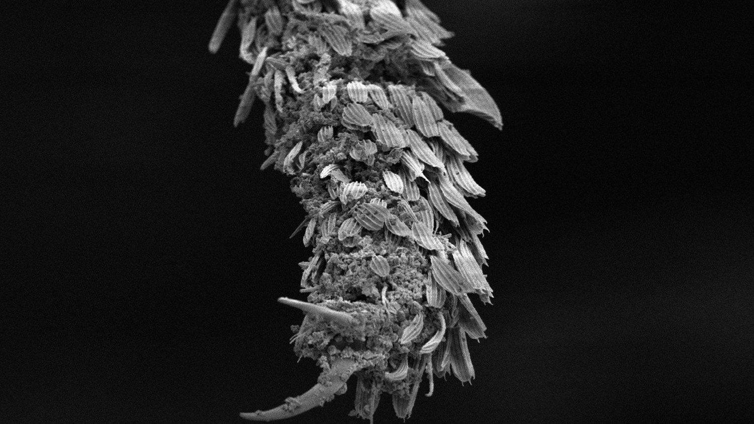 ▼粉塵パーライトが付着した蚊の足