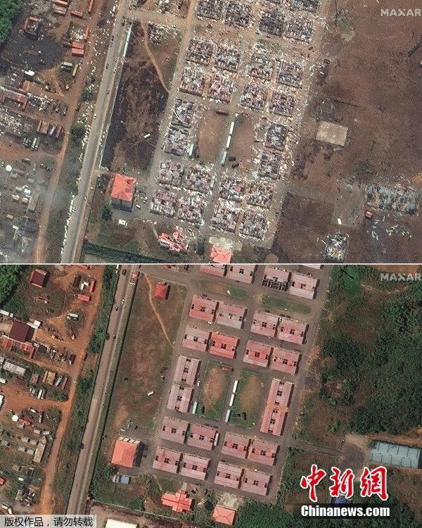 Photo:网易新闻この衛星写真は爆発発生から1日後に撮影されたものになります。この爆発が発生したのはギニア最大の都市の1つとなるバータで、9日時点で死者数は105人となっています。