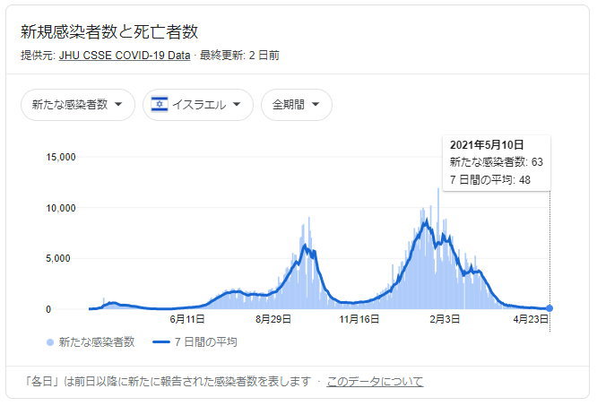 ▼イスラエル(ワクチン接種率としては世界2位とされる国)