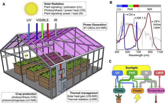 研究者によると、半透明のソーラーパネルST-OSCは必要に応じて吸収することができる光の波長を調整することができるという特徴があり、この研究では植物の成長を妨げない波長の光を吸収するよう設定していたとのこと。
