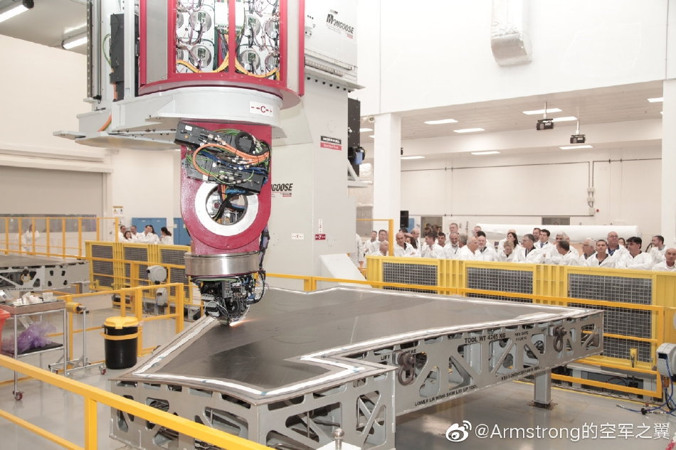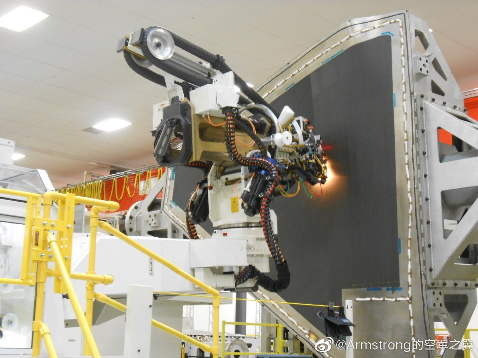 こちらその写真になるのですが、具体的に何をしているのかは一般人にはよくわかりません。主翼一体型複合スキンなるものの工程を写したものだとしています。