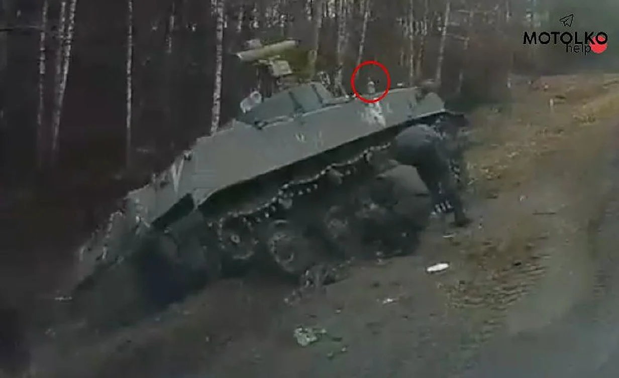 事故があったのはウクライナに侵攻していたと考えられるロシア軍の空挺戦車で、事故あったのはベラルーシのコマリンという地域だとしています。