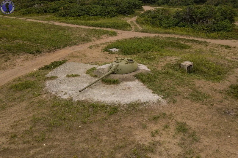 こちらはT-55の砲塔。砲塔は平地ではなくトーチカ建設のため予想では人工的に盛り上げた丘の上に作られています。