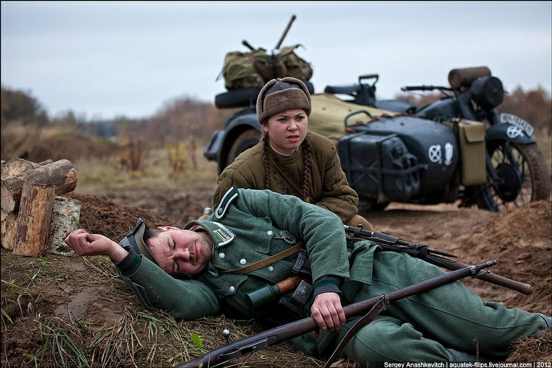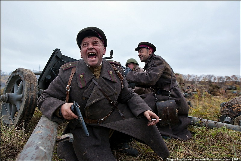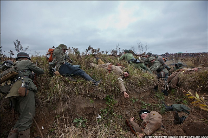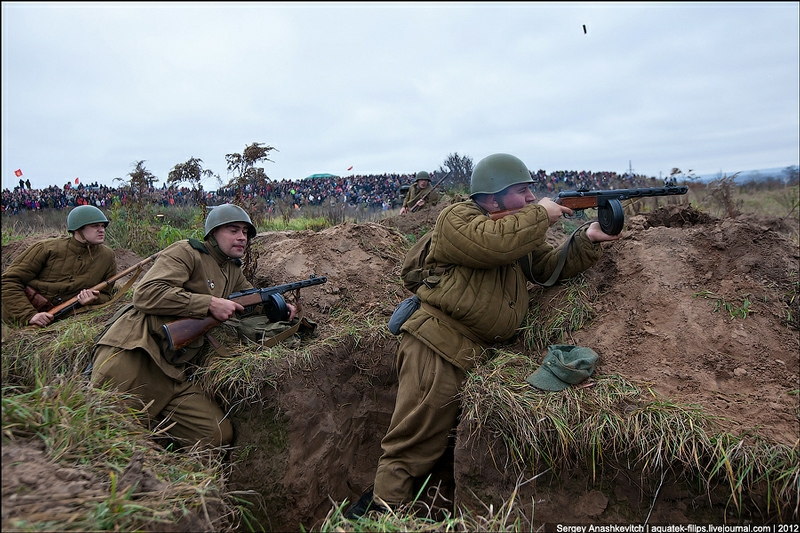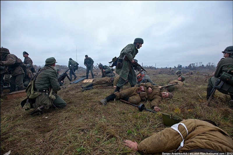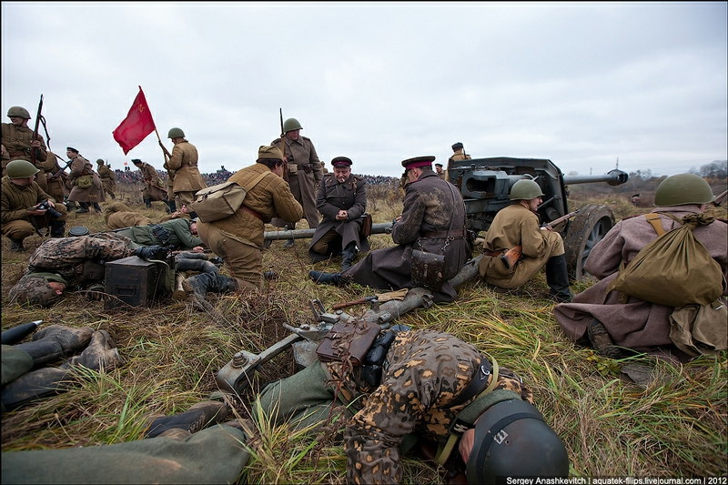 その後、1943年にソ連軍によるキエフの奪還が行われ、戦闘が終わったのが11月6日になります。そんなことでキエフ開放のお祝いとして69周年を迎えた今年、世界10カ国800人によるキエフ奪還のロールプレイが行われました。